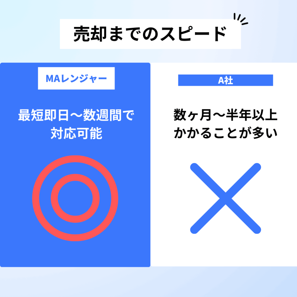 最短で数週間、通常でも1〜2ヶ月程度で完了いたします。お客様のご都合に合わせてスケジュール調整も可能です。緊急の資金調達が必要な場合は、優先的に対応いたします。MAレンジャーはあくまでも、紹介サービスので、このスピードと金額が実現できています。