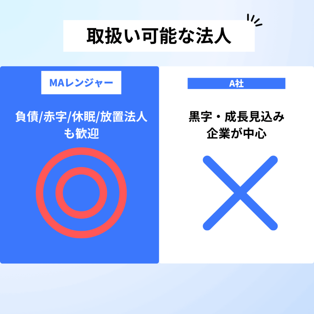 取扱い可能な法人負債/赤字/休眠/放置法人も